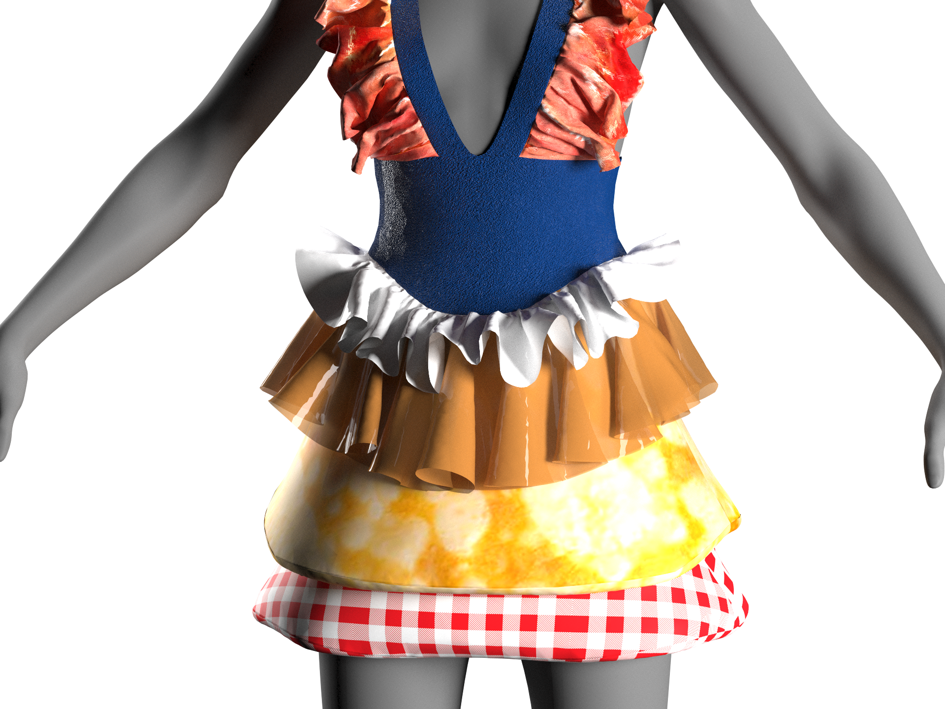 The 3D sample for the dress with patterns (above) and the real-life dress below. Also, my cat.